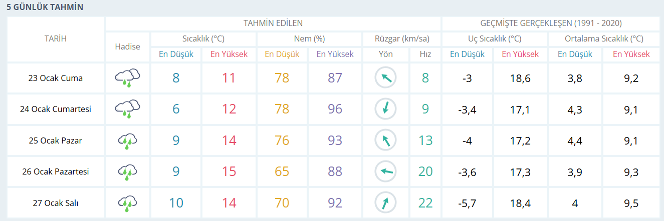 Önümüzdeki 5 gün boyunca hava yağışlı seyredecek.