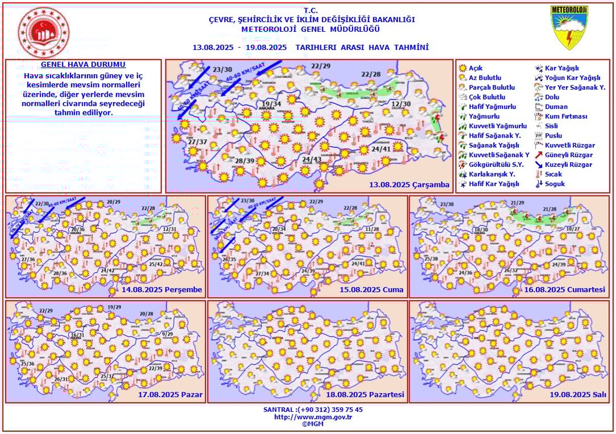 MGM İstanbul Bölge Tahmin ve Erken Uyarı Merkezi'nce yapılan açıklamada; 14 Ağustos Perşembe günü, gece saatlerine kadar Edirne, Kırklareli, Tekirdağ, İstanbul ve Yalova’nın batı ilçelerinde kuzey ve kuzeydoğu yönlerden kuvvetli rüzgar (40-60 km/saat, yer yer 60-80 km/saat) beklendiği bildirildi.