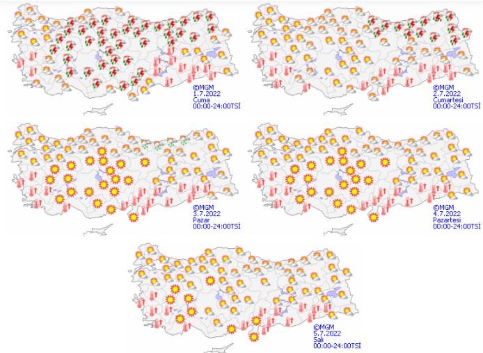 Hava sıcaklığında önemli bir değişiklik olmayacağı, iç kesimlerde mevsim normalleri altında, diğer yerlerde mevsim normalleri civarında seyredeceği tahmin ediliyor.
