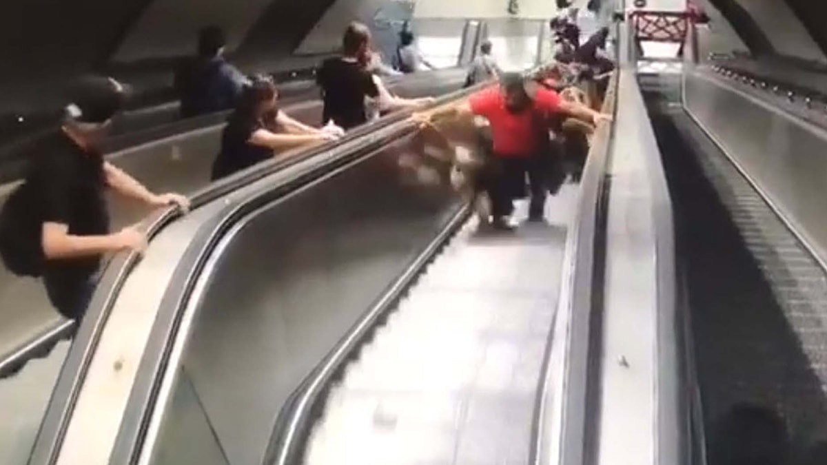 İzmir'de Üçyol Metro İstasyonu'ndan çıkışı sağlayan yürüyen merdivenin, üzerinde yolcular bulunduğu sırada bir anda ters yönde hareket ettiği anların görüntüleri ortaya çıktı. Görüntülerde, bir vatandaşın düşmemek için ters yöne koştuğu bazı yolcuların ise merdivenden düştüğü görüldü.