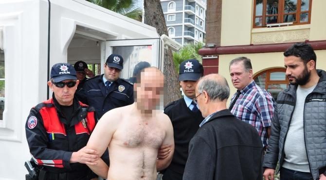 Sağ elinin işaret parmağını kaldırıp, Arapça bir şeyler de söyleyen R.T., polisler tarafından etkisiz hale getirilip, Valilik önündeki polis noktasında bulunan kulübeye sokuldu, takviye polis ekibi ve ambulans istendi. Kendisini yakalayan polislere hareketlerde bulunduğu da ileri sürülen R.T., bu sırada gelen sağlık ekiplerine de saldırmak istedi. Polis, çevreye ve kendisine zarar vermemesi için R.T.'nin ellerini arkadan kelepçeledi. R.T., kelepçeli olarak ambulansa bindirilerek hastaneye götürüldü.