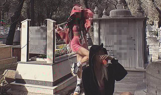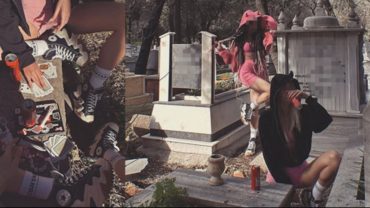 Mezar taşlarının üzerine oturup, iskambil kağıdı oynayan ve kola içen 2 kadın, kayda aldıkları o görüntü ve fotoğrafları da sosyal medya hesaplarında paylaştı.