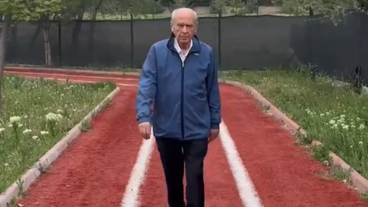 Bahçeli'nin spor kıyafetlerle yaptığı yürüyüşe ait görüntülerde Ferdi Tayfur'un 'Söyleten Sensin' şarkısı da çaldı.