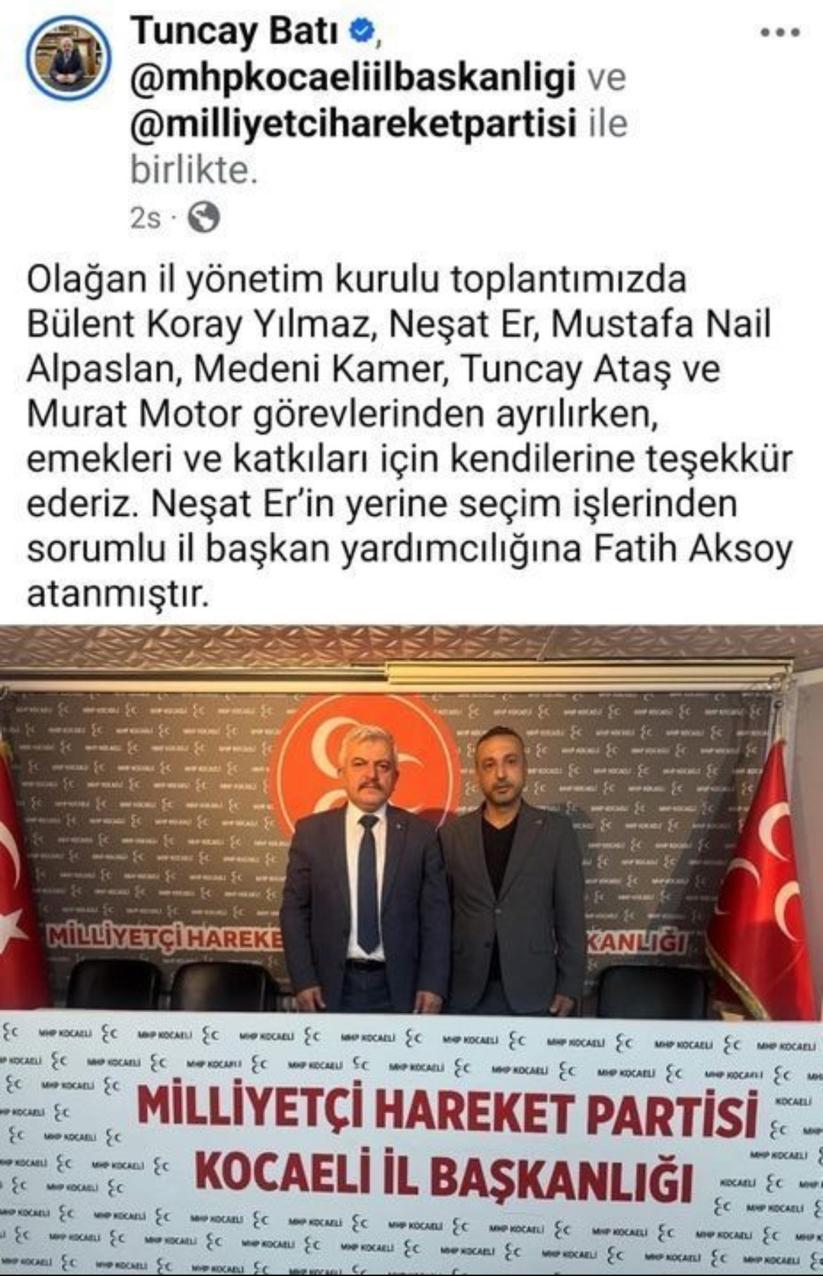 İstifa eden İl Başkan Yardımcısı Neşet Er’in yerine Fatih Aksoy’un atandığı açıklandı. Boşalan diğer pozisyonlara ilişkin atamaların da önümüzdeki günlerde tamamlanacağı belirtildi. Ancak partideki krizin sadece idari değil, aynı zamanda ahlaki ve siyasi bir tartışmaya dönüştüğü ifade ediliyor.