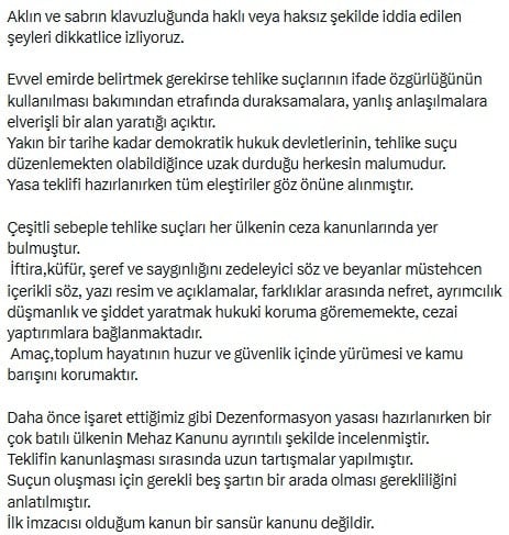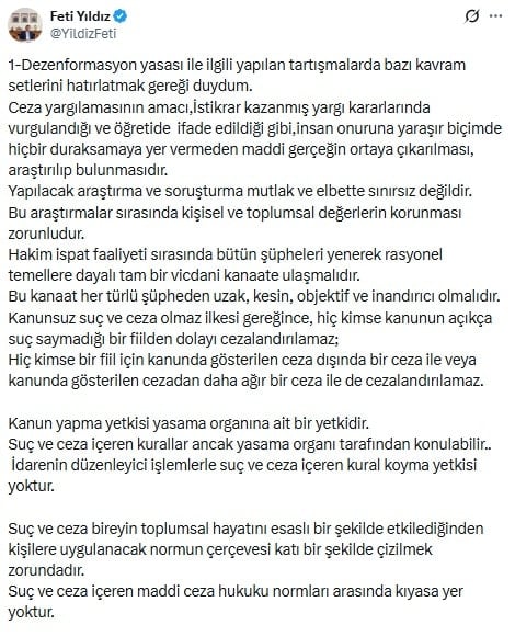 “1-Dezenformasyon yasası ile ilgili yapılan tartışmalarda bazı kavram setlerini hatırlatmak gereği duydum.