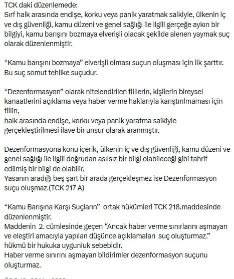 Haber verme sınırını aşmayan bildirimler dezenformasyon suçunu oluşturmaz.”