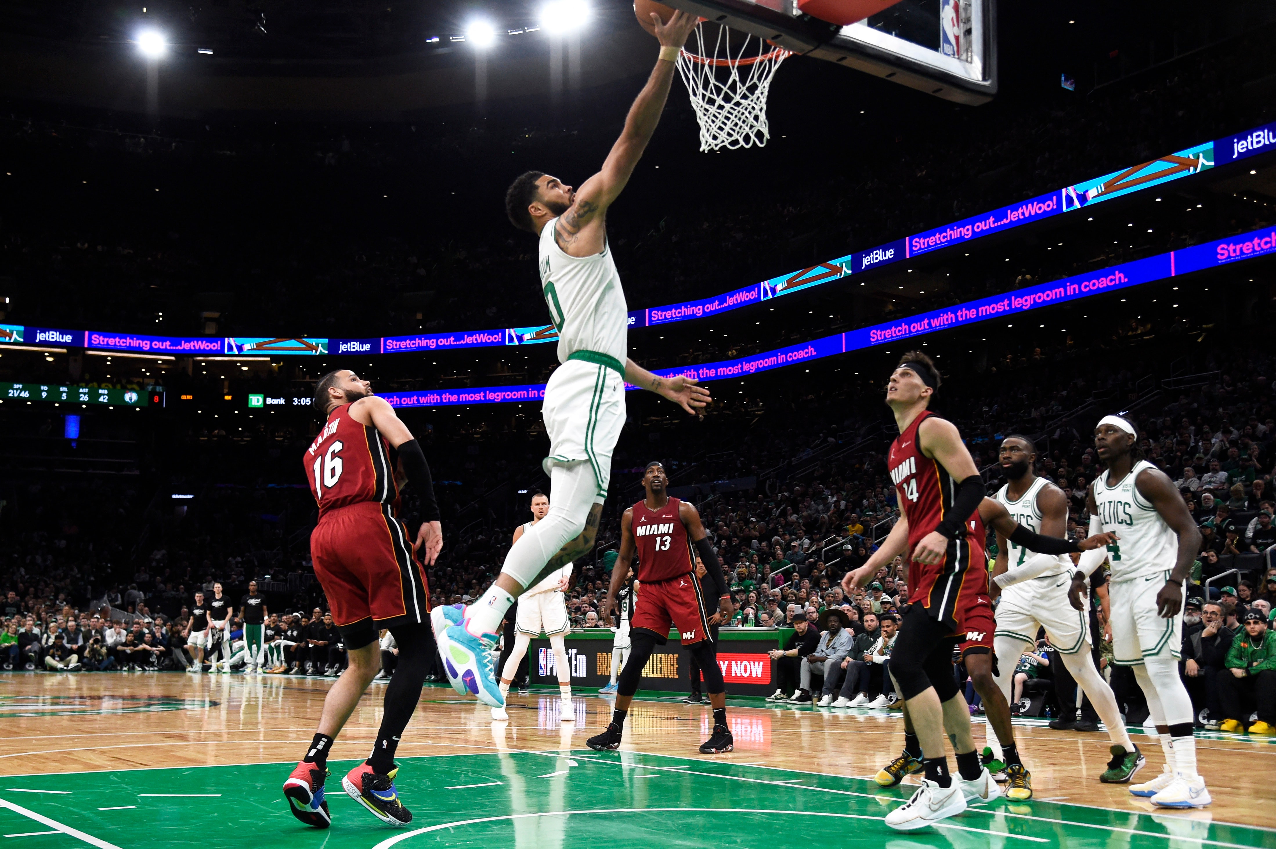 Doğu Konferansı'nı zirvede tamamlayan Celtics, play-in oynayarak 8. sırayı alan Heat karşısında serinin ilk maçını, Jayson Tatum'ın 23 sayı, 10 ribaunt, 10 asistlik "triple-double" performansının yardımıyla kazandı.