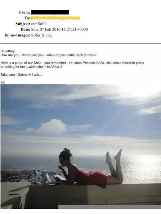 İsveç basınında yer alan haberlere göre, Prenses Sofia'nın 2005 yılı civarında New York'taki sosyal ortamlarda Epstein ile tanıştığı iddia ediliyor. Tanışıklığın, finansçı Barbro Ehnbom aracılığıyla sağlandığı ve ikili arasında e-posta trafiği yaşandığı öne sürüldü.