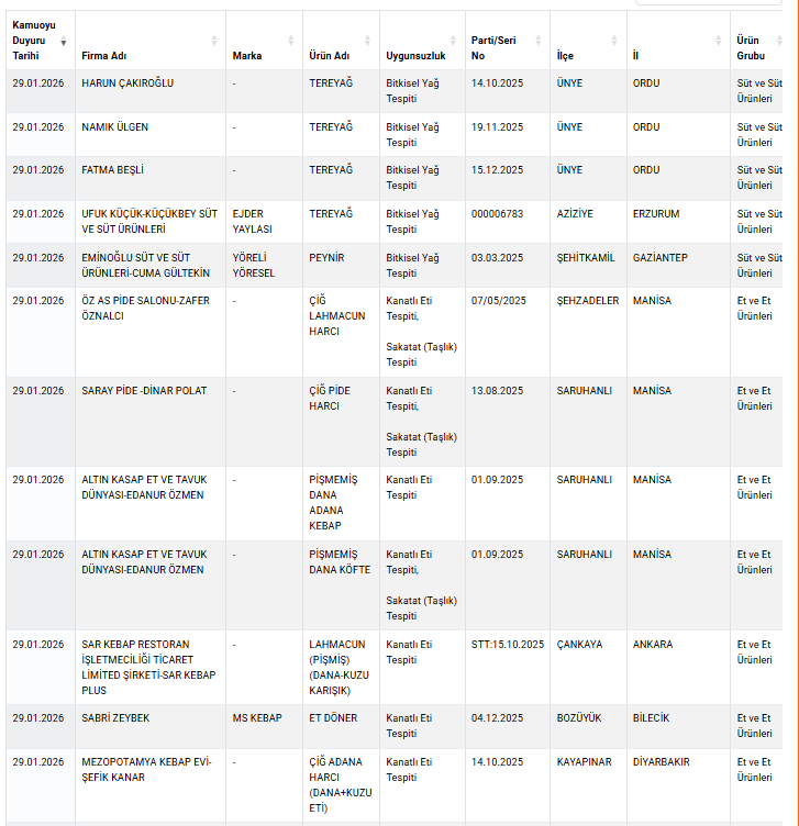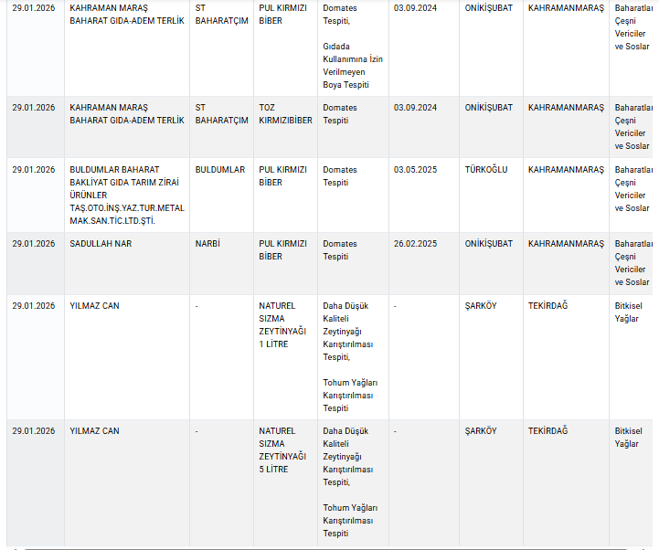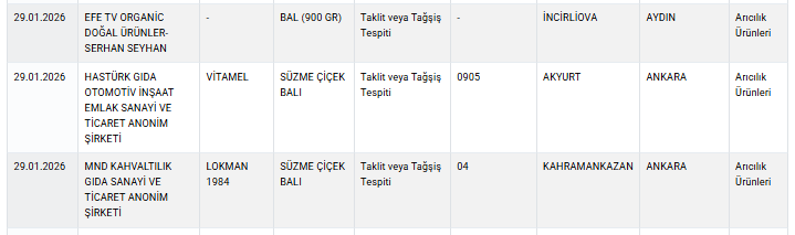 Tarım ve Orman Bakanlığı, 29 Ocak 2026 tarihinde yayımladığı güncel listeyle, taklit veya tağşiş yaptığı tespit edilen firmaları ve ürünleri kamuoyuna duyurdu. Bakanlığın resmi denetimleri sonucunda tüketiciyi yanıltan, ürün içeriğini değiştiren ya da mevzuata aykırı üretim yapan çok sayıda firma ifşa edildi.