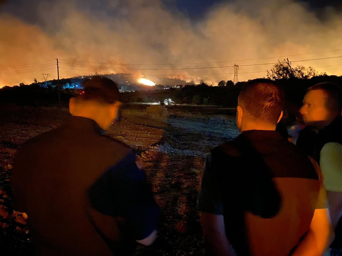 Muğla Valisi İdris Akbıyık, Milas Kaymakamı Mustafa Ünver Böke, Milas Belediye Başkanı Fevzi Topuz Çamovası’na giderek incelemelerde bulundu, yangın ile ilgili bilgi aldı.
