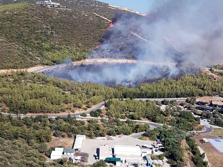 Rüzgarın etkili olmasıyla, sitelerde ve otellerdeki su taşıyan traktörler ve tankerler bölgeye yönlendirildi. Yangına 6 helikopter ve 6 uçak ile havadan, 12 arazöz, 6 su tankeri ve 3 dozer ile karadan müdahale edildi.