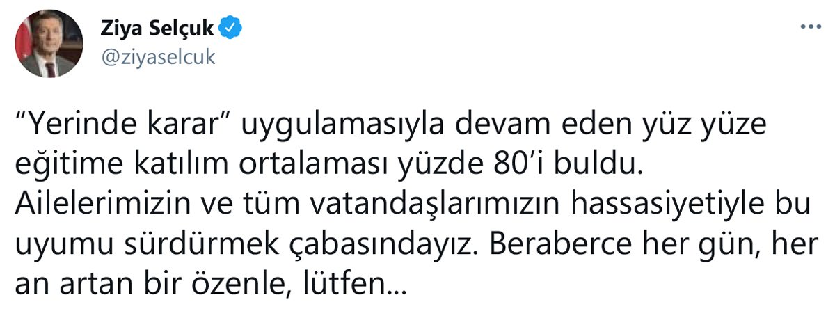 * Ailelerimizin ve tüm vatandaşlarımızın hassasiyetiyle bu uyumu sürdürmek çabasındayız.