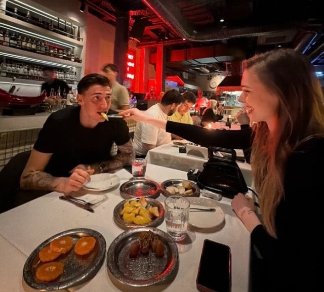 Deneyimli kalecinin hayali gerçek oldu. Fransız model Dinov'un elmayı soyarak Berke Özer'i elleriyle beslediği fotoğraf sosyal medya ikilinin hesaplarından paylaşıldı. Ünlü çiftin paylaştığı poz, Berke Özer'in, "Hanım elma soyup bıçağın ucuyla bana yedirsin, böyle bir aşk istiyorum" sözlerini yeniden hatırlattı.