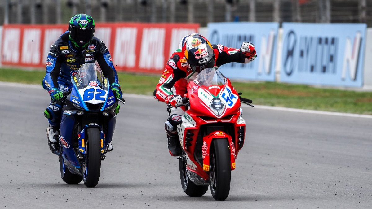 Dünya Supersport Şampiyonası'nın 10. etabı, İspanya'nın Alcaniz bölgesindeki 5.077 kilometrelik MotorLand Aragon Pisti'nde 15 tur üzerinden düzenlendi. Günün ilk Superpole yarışını 10. sırada tamamlayan MV Agusta Reparto Corse takımı adına yarışan Bahattin Sofuoğlu, ilk yarışı ise 6. sırada bitirdi. Yarışa 20. sıradan başlayan Kawasaki Puccetti pilotu Can Öncü ise 17'ncilik elde etti. Yarışı birinci sırada tamamlayan Aruba.it ekibinin İtalyan sürücüsü Nicolo Bulega, pilotlar klasmanında 383 puanla zirvede yer almaya devam etti. Bu klasmanda, 146 puanlı Bahattin Sofuoğlu 5'inci; 65 puanlı Can Öncü 14'üncü sırada yer alıyor. Sezonun 10. etabının ikinci yarışı, yarın (TSİ) 13.30'da başlayacak. (AA)