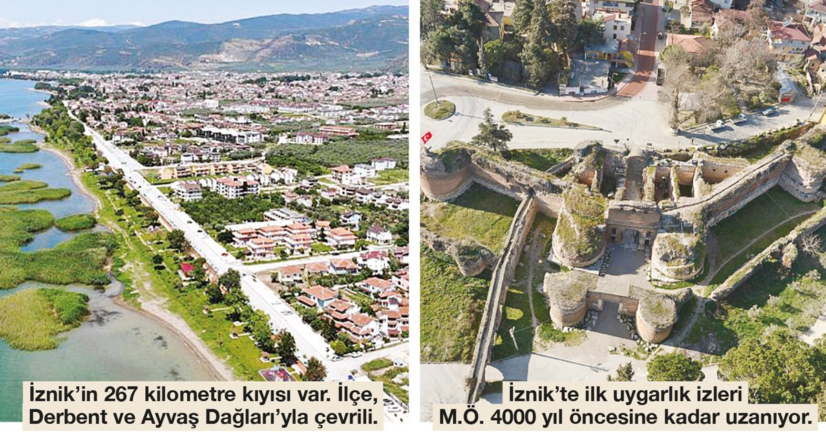 Aradan uzun yıllar geçmesine rağmen Kurtuluş Savaşı’nın açtığı yaraları bir türlü saramayan İznik’i Ulu önder Mustafa Kemal Atatürk 15 Temmuz 1935 yılında ziyaret etti. Atatürk, İznik’i ‘Yenişehir’e mi, Karamürsel’e mi, Osmaneli’ye mi bağlayalım?..’ tartışmalarının yapıldığı o günlerde; “Sinesinde çok eski medeniyet eserleri taşıdığı için, ileride büyük bir turistik şehir olacak bu geniş ovali, suyu bol şehri keşke il merkezi yapsa idik” diyerek, İznik’in önemini bir kez daha dile getirmiştir. İznik yüzyıllarca medeniyetlere ev sahipliği yahptı. İznik’te ilk uygarlık izlerinin M.Ö. 4000 yıl öncesine kadar dayandığı tarihi kaynaklarda belirtilmiştir. İznik ismi, eski Yunancada ‘Nikaia’ya doğru’ anlamını taşıyan ‘EIS TEN NIKAION’ dan gelmektedir. EIS ve NIK heceleri halk dilinde kaynaştırılarak önce EISNIK sonra ISNIK ve günümüzde de İznik şeklini almıştır. Başta Roma, Bizans, Selçuklu ve Osmanlı’da başkentlik yapmıştır.