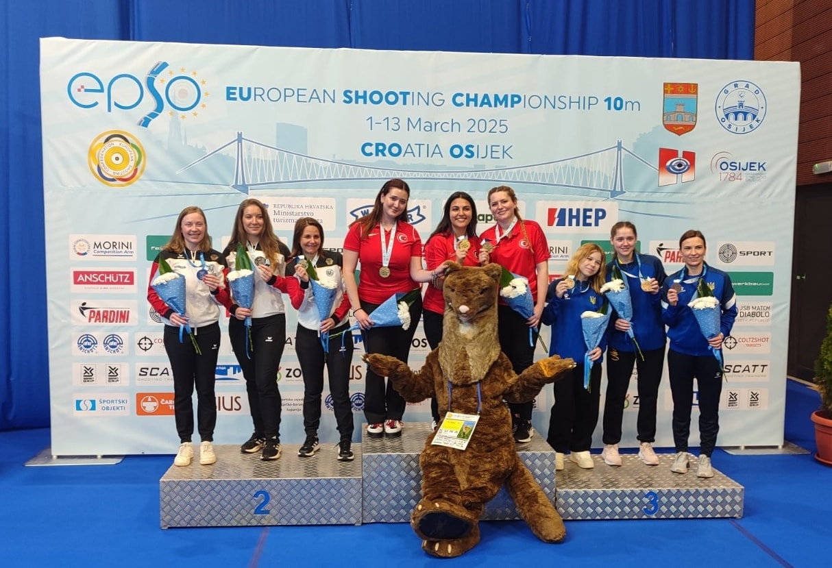Hırvatistan'da düzenlenen Avrupa Havalı Silahlar Şampiyonası'nda Şevval İlayda Tarhan, Şimal Yılmaz ve Esra Bozabalı'dan oluşan milli takım, kadınlar 10 metre havalı tabanca trio kategorisinde altın madalya aldı.
