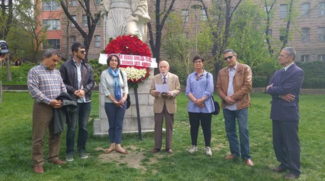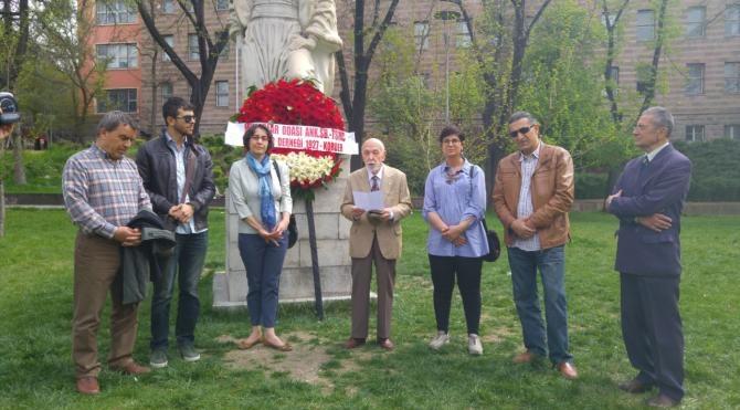 Mimar Sinan Anıtı önünde yapılan açıklamayı mimarlık örgütleri adına Paul Bonatz, Ernst Arnold Egli ve Emin Onat gibi ünlü mimarların eğitiminden geçmiş olan 87 yaşındaki mimar Vedat Yalçınkaya yaptı. Yalçınkaya, "Mimar Sinan'ın 428. ölüm yıl dönümünde Mimar Sinan'ın geniş bir çeşitlilik gösteren ve dönemin koşullarına uyum sağlayan bir esnekliğe sahip olan, başta insan olmak üzere, mekan, ölçek, biçim, anlam, estetik, çevre ve simgesellik gibi öğeleri içinde bulunduran mimarlık anlayışını bir kez daha saygıyla anıyoruz" dedi.