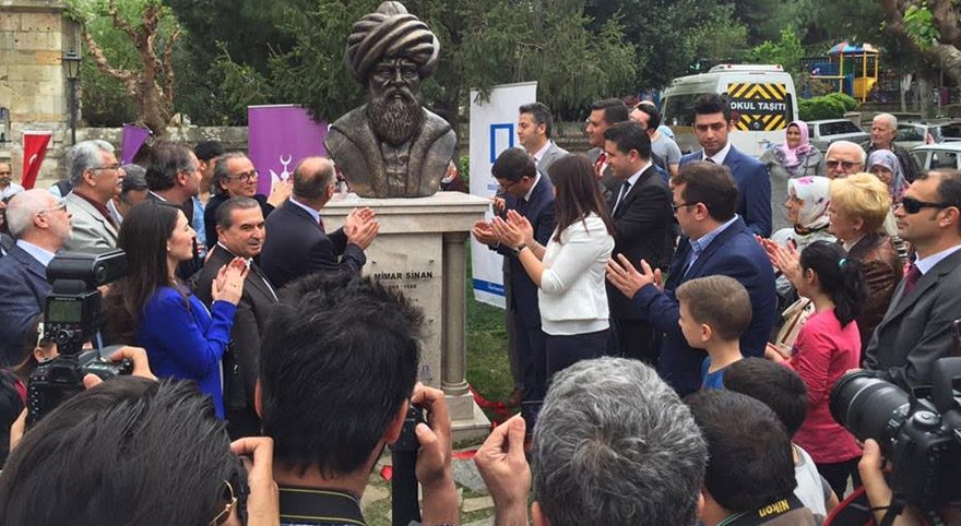 Yapılan konuşmaların ardından Mimar Sinan’ın büstü alkışlarla açıldı. Büstün açılışının ardından heykeltraş Mustafa Toygar ve büstün yapımında emeği geçenlere plaket takdim edildi.  DHA/CİHAN