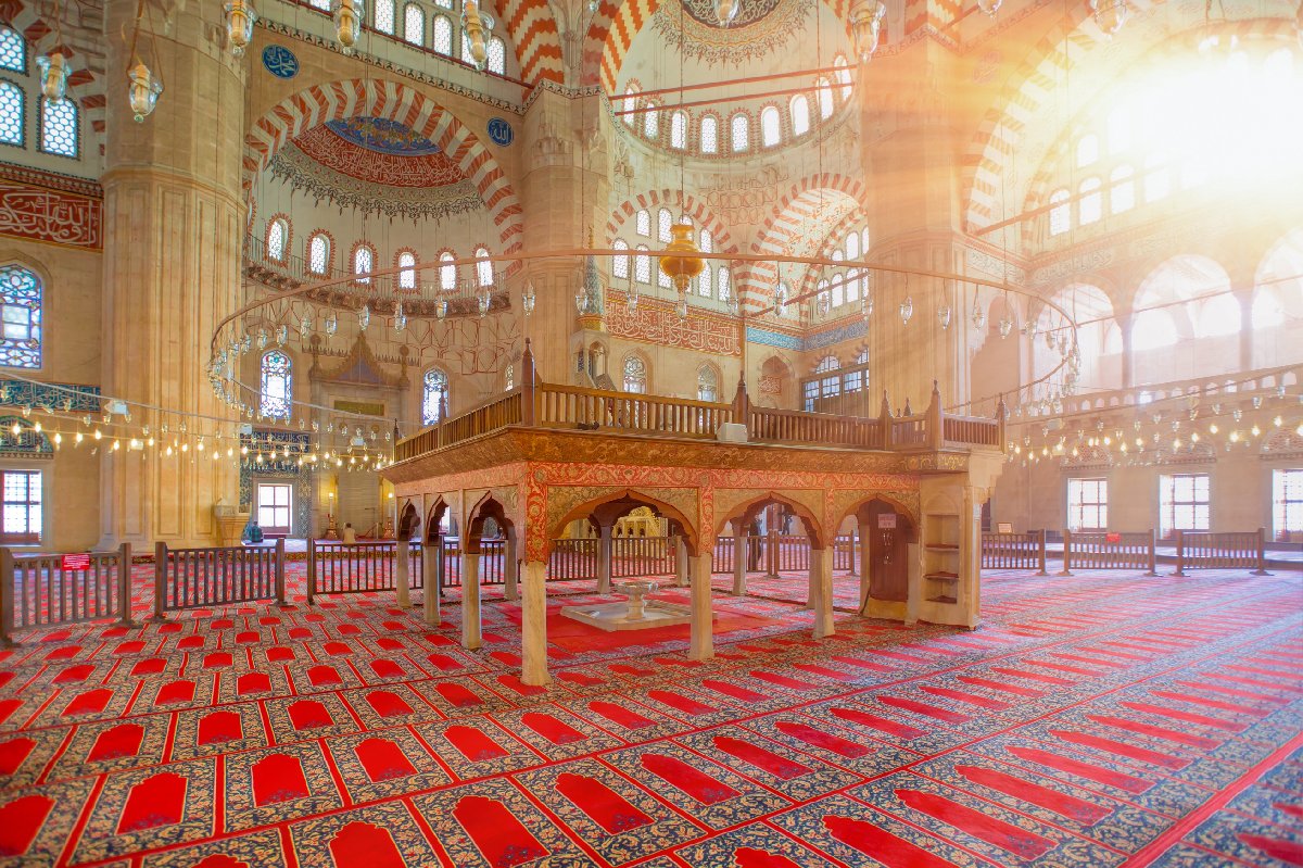 Edirne'nin ve Osmanlı İmparatorluğu'nun simgesi olan cami,kentin merkezinde, eskiden Sarıbayır ve Kavak Meydanı denilen yerdedir. Çok uzaklardan dört minaresi ile göze çarpan yapı, kurulduğu yerin seçimiyle, Mimar Sinan'ın aynı zamanda usta bir şehircilik uzmanı olduğunu da göstermektedir. Kesme taştan yapılan cami iç bölümüyle 1.620 m2'lik,tümüyle 2.475 m2'lik bir alanı kaplar. Mimarlık tarihinde en geniş mekana kurulmuş yapı olarak nitelenen Selimiye Camisi, yerden yüksekliği 43.28 m. olan, 31.30m. çapındaki kubbesiyle ilgi çeker. Ayasofya'nınkinden daha büyük olan Kubbe, 6 m. genişliğindeki kemerlerle birbirine bağlanan 8 büyük payeye oturur. Köşelerde dört, Mihrap yerinde bir yarım kubbe merkezi kubbeyi destekler.