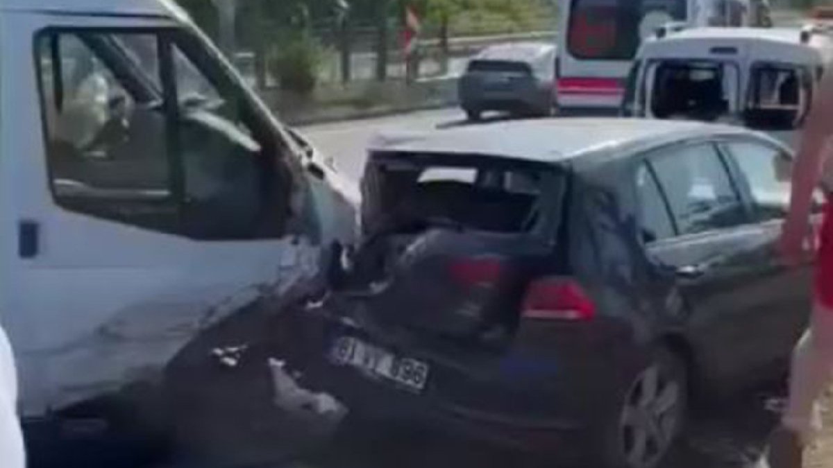 Trabzon'da Karadeniz Sahil Yolunda seyir halindeki minibüs, sürücüsünün direksiyon hakimiyetini kaybetmesi üzerine yol kenarında park halinde bulunan 7 araca çarptı. Kazada, 2 kişi yaralandı.