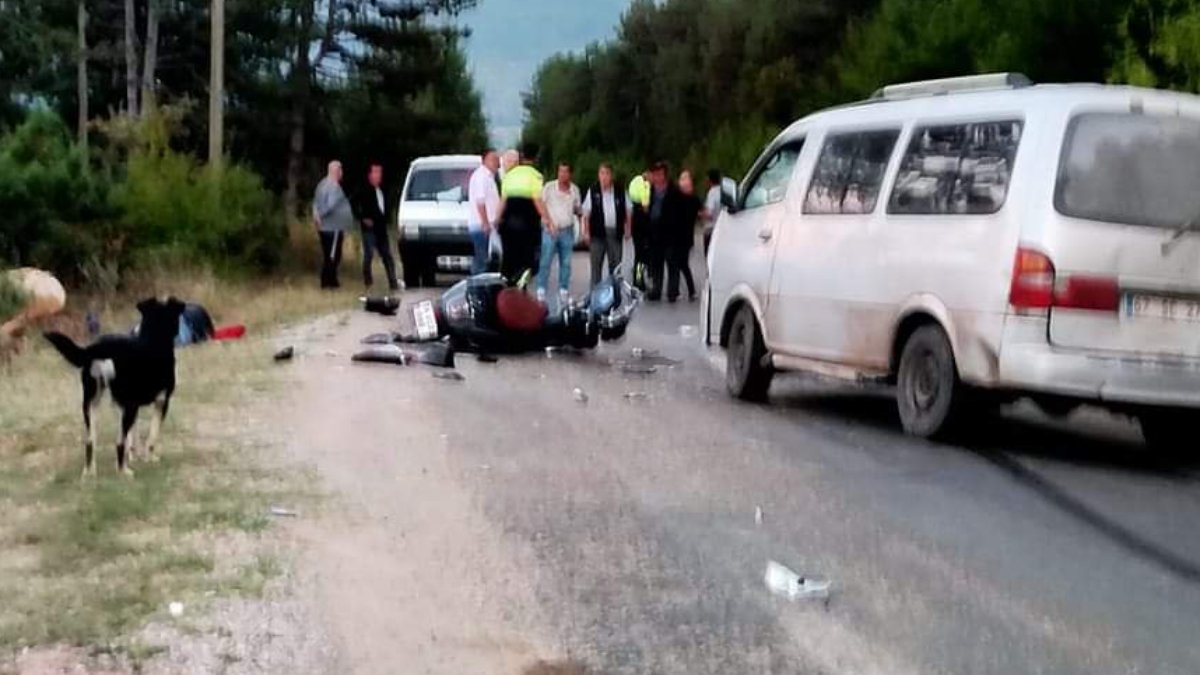 Adem Yılmaz idaresindeki minibüs ile karşı yönden gelen Okan Ceylan idaresindeki motosiklet kafa kafaya çarpıştı.