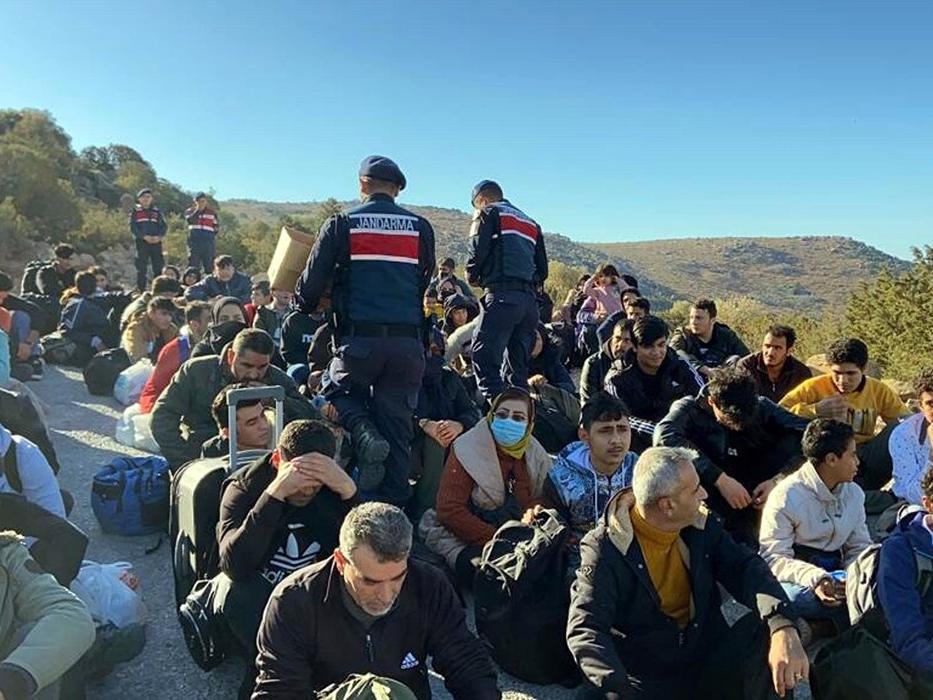 Urla Cumhuriyet Başsavcılığı'nın talimatı doğrultusunda, İl Jandarma Komutanlığı İstihbarat Şube Müdürlüğü, Göçmen Kaçakçılığı ve İnsan Ticareti ile Mücadele Şube Müdürlüğü, Urla İlçe Jandarma Komutanlığı, MİT Başkanlığı ve Aydın Jandarma Taktik İHA Birlik Komutanlığı ortak çalışma yaptı. Urla'nın Zeytineli Mahallesi Çakmak Koyu mevkindeki araziye bu sabah gelen 8 araçta, aralarında kadın ve çocukların da bulunduğu toplam 107 kaçak göçmen ile 11 organizatör şüphelisi yakalandı.