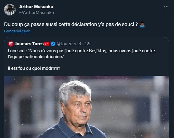 Mircea Lucescu, Beşiktaş karşısında alınan sonucun ardından oldukça tartışılacak ifadeler kullandı. Beşiktaş'ın kadrosundaki Afrikalı oyunculara dair söylemleriyle eleştiri alan Lucescu'ya, ilk tepki siyah beyazlı futbolcu Masuaku'dan geldi.