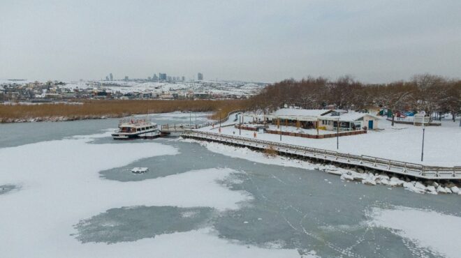 'Ankara'nın denizi' olarak adlandırılan Mogan Gölü'nün bazı kısımları, soğuk hava nedeniyle buz tuttu.