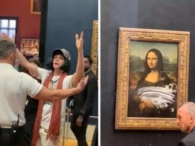 Pasta kremasıyla kaplanan Mona Lisa tablosu kısa sürede gündem oldu.