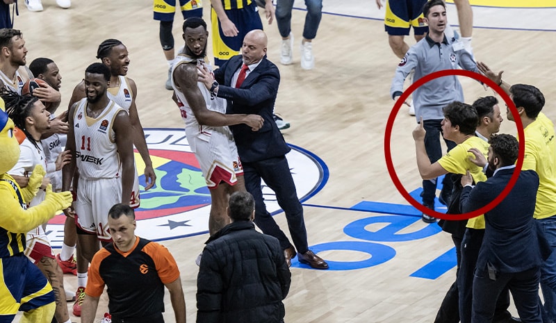 Hall’ın basketinin ardından karşılaşmanın bitmesiyle birlikte Monacolu oyuncular, Diallo ve Blossomgome, saha içerisinde oturan Fenerbahçeli taraftarlar ile atışmaya girdi.
