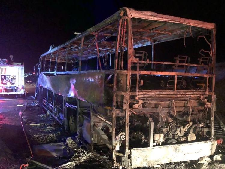 Otobüs kullanılamaz hale gelirken, jandarma yangınla ilgili inceleme başlattı. (DHA)