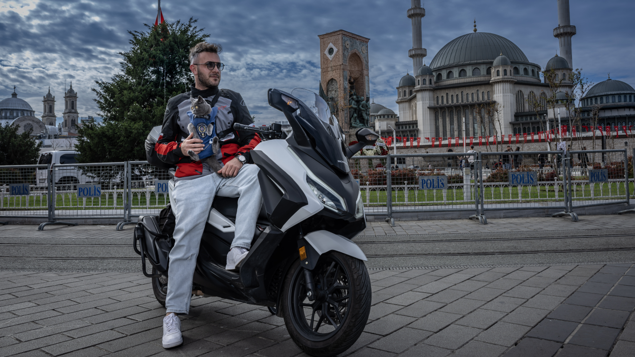 İlk önce uçakla İstanbul'a gelen ikili, Garipçe, Üsküdar, Eminönü, Sirkeci ve Taksim'de motosikletle dolaştı. Gittiği her noktada turistlerin ilgisini çeken kedi, kimi zaman da çocukların oyun arkadaşı oldu.