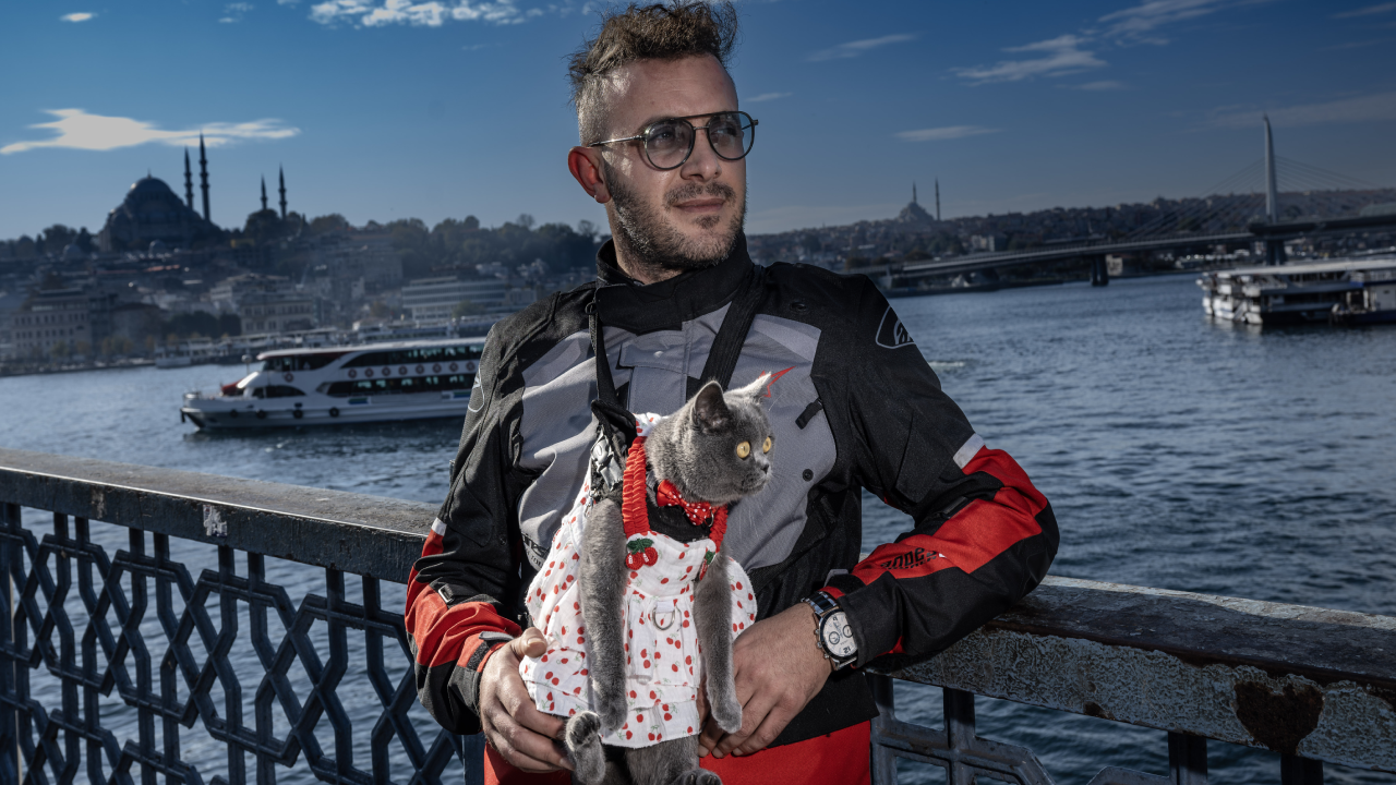 İstanbul'u kedisiyle gezen Topcu, "Gofret"i 2 aylıkken Hakkari'den sahiplendiğini, ilk yolculuklarında 1200 kilometre yol yaptıklarını anlattı.
