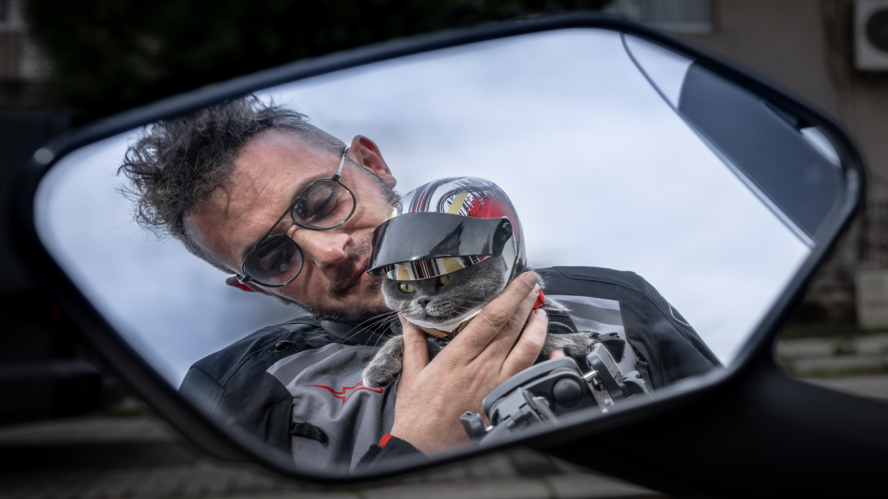 Kimi zaman gelinlik, polis ve arı kıyafetiyle motosikletin önünde oturan kedi, trafiğe çıkarken kaskını da takmayı asla ihmal etmiyor. Onu motosikletin üzerinde görenler önce oyuncak sanıyor, yaklaşınca gerçek olduğunu fark edip kediye şaşkınlıkla gülümsüyor.