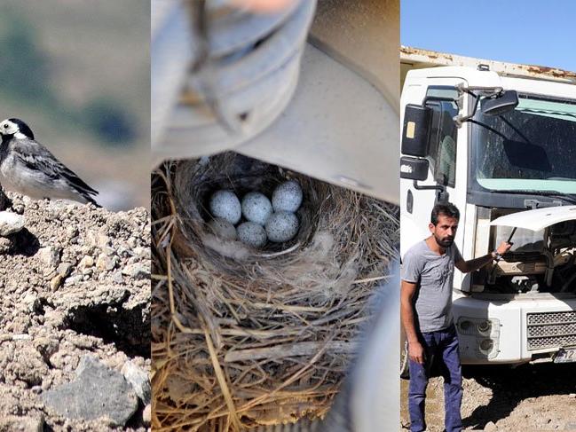 Kamyon kuşlar uçana kadar bekleyecek. Foto: AAKuşun yuva yaptığını gören şantiye çalışanı İlyas Varol (32), kamyonun üzerinde kuşların uçtuğunu gördüğünü, gösterilen hassasiyet sayesinde kuşun 5 yavrusunun dünyaya geldiğini belirtti.