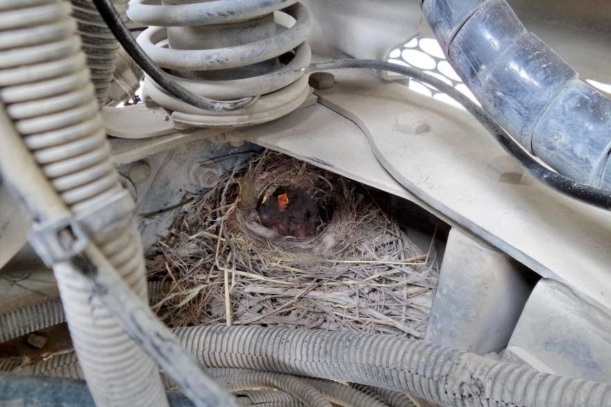 Motorun içindeki yuvada yumurtadan çıkan yavrular. Foto: AAKamyonun faaliyetini durdurduklarını ifade eden Sönmez, kuş yuvasının zarar görmemesi için duyarlılık gösteren personele de teşekkür etti. Sönmez, "Şu anda kuşun yavruları yumurtadan çıktı. Kuşlar özgürlüklerine kavuştuktan sonra kamyonumuzu işe göndereceğiz. Kamyonun zararı, ziyanı hiç önemli değil. Önemli olan bu yavruların özgürlüğüne kavuşmasıdır." dedi.