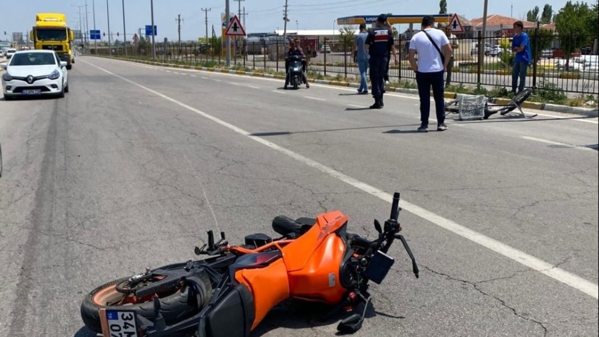 Aksaray'ın Eskil ilçesinde Selim Bilge (27) yönetimindeki motosiklet, Aksaray-Konya kara yolu Eşmekaya beldesi girişinde, Nevabil Kan’ın (57) kullandığı bisiklete çarptı.