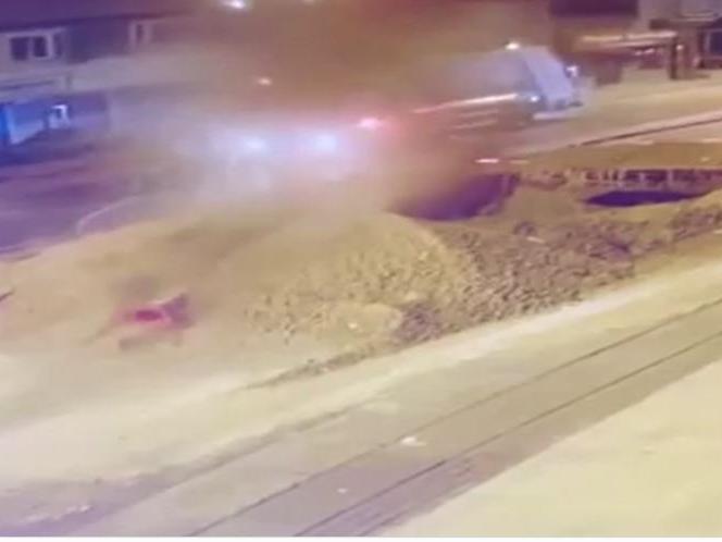 Yol yapım çalışmasını fark edemeyerek çukura düşen sürücünün yardımına vatandaşlar koştu. Sağlık durumunun ağır olduğu öğrenilen sürücünün çukura düşme anı güvenlik kamerasına yansıdı. (İHA)