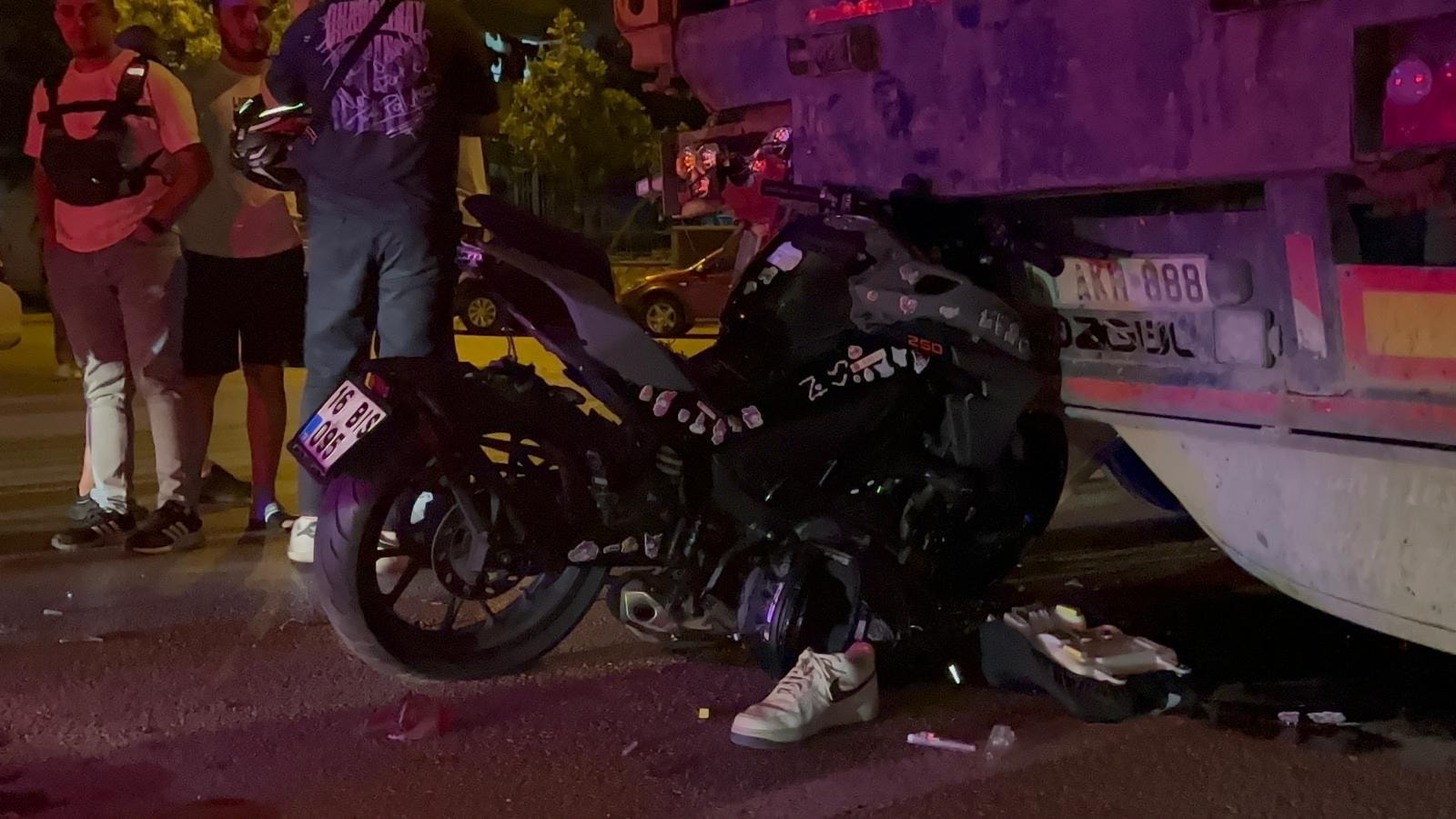 Şehir merkezi istikametine seyir halinde olan Furkan Tigit (20) yönetimindeki 16 BIS 095 plakalı motosiklet, sürücüsünün kontrolünden çıkarak park halinde 41 AKH 888 plakalı TIR’a arkadan çarptı.