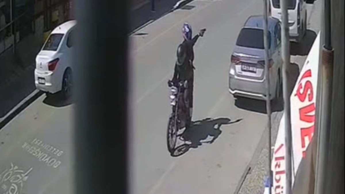 Motosikletli 2 kişinin iş yerine peş peşe ateş ettiği anlar bir iş yerinin güvenlik kamerasına yansıdı.