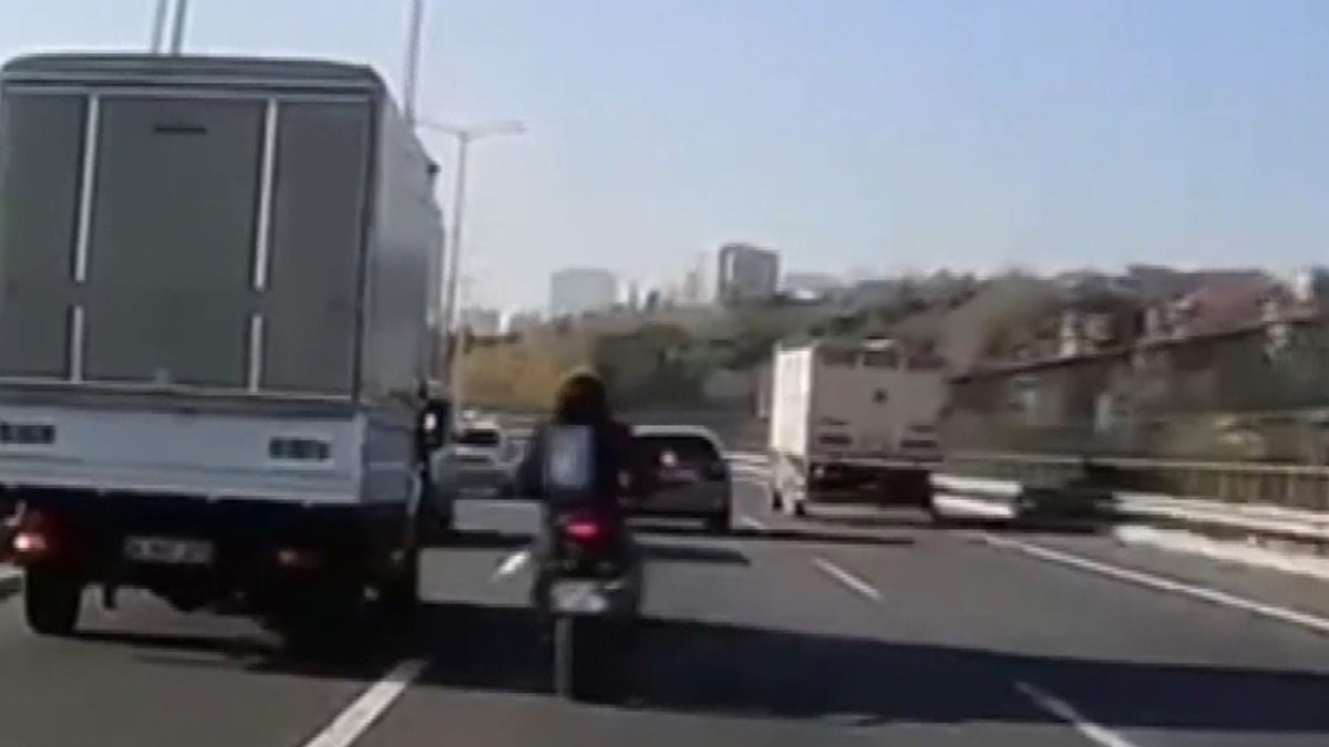 İstanbul Başakşehir TEM Otoyolu'nda kamyonetin sıkıştırdığı motosiklet sürücüsü, bariyerlere çarparak yaralandı. Motosiklet sürücüsü Serkan Yılmaz'ın ölümden döndüğü kaza anı, araç kamerasına saniye saniye yansıdı. Yılmaz, "Arkamdan gelen otomobilin araç kamerası olmasaydı, ben hiçbir şeyi ispatlayamayacaktım" dedi.