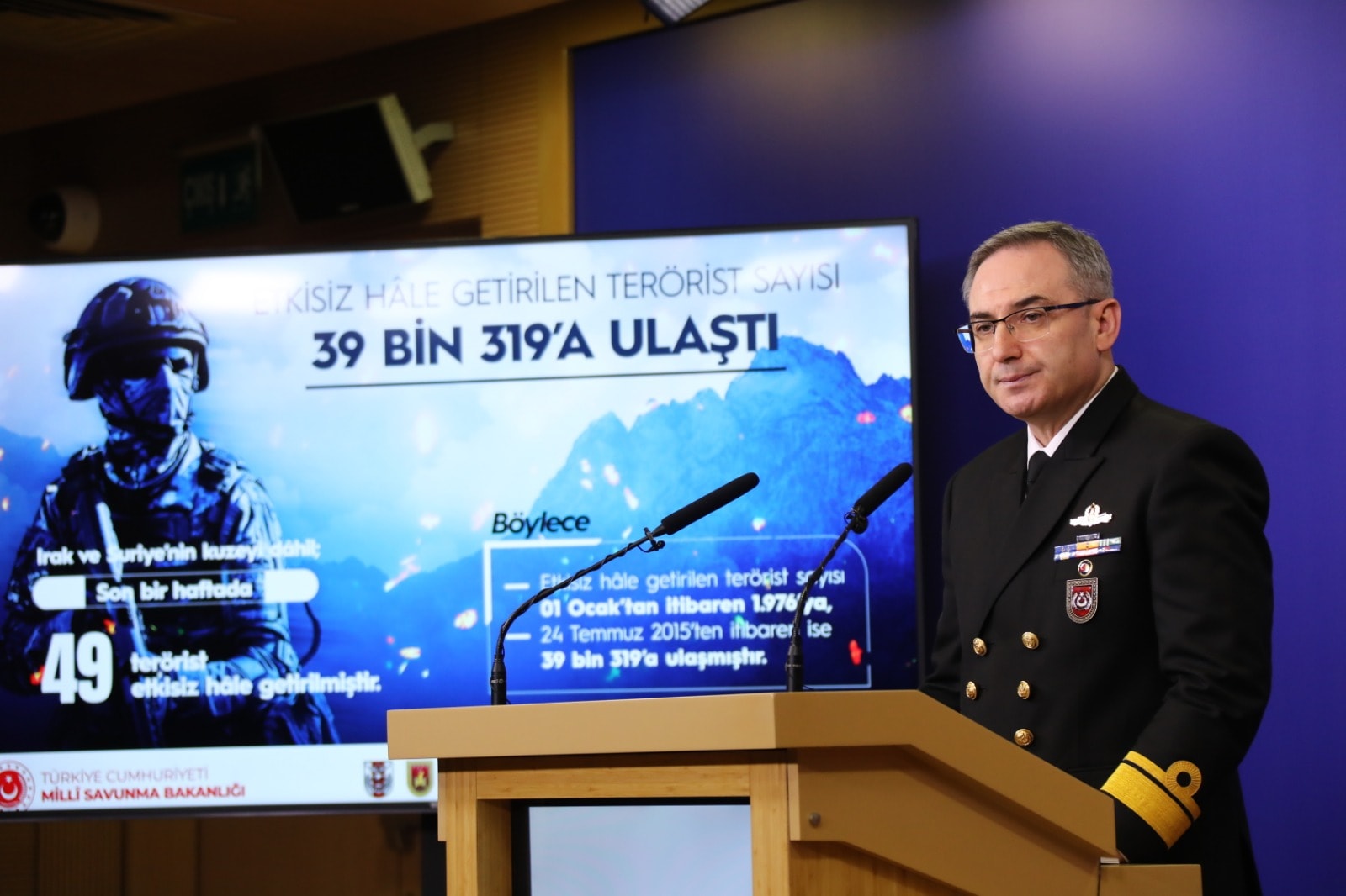 MSB Basın ve Halkla İlişkiler Müşaviri Tuğamiral Zeki Aktürk, Bakanlık'taki basın bilgilendirme toplantısında, Türk Silahlı Kuvvetleri'nin (TSK) terörle mücadelesinin kararlılıkla devam ettiğini belirtti.