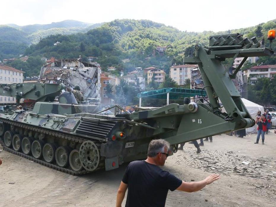Milli Savunma Bakanlığı (MSB), yaşanan sel felaketi üzerine operasyon bölgelerinde de sık sık kullanılan kaydırmalı köprü tankları ve sabit köprü araçlarını 3 gün önce Bozkurt ilçesine göndererek kurulumunu tamamladı.