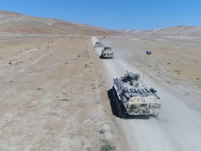 MSB'nin paylaşımında, "Yürüyen birer dağız, coşkun seliz, tufanız. Kükreyen aslanlarız, deviz, ateşiz, kanız. Azerbaycan’da icra edilen TurAz Kartalı Tatbikatı planlandığı gibi başarıyla devam ediyor" denildi.