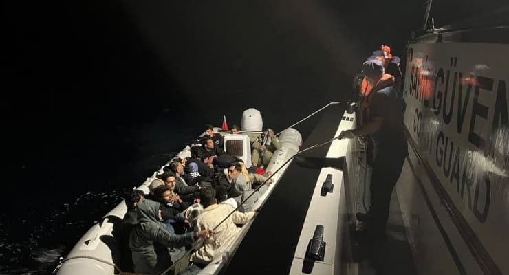 Alaburun açıklarında can sallarında bir grup düzensiz göçmen olduğu bilgisi üzerine bölgeye Sahil Güvenlik botları görevlendirildi.