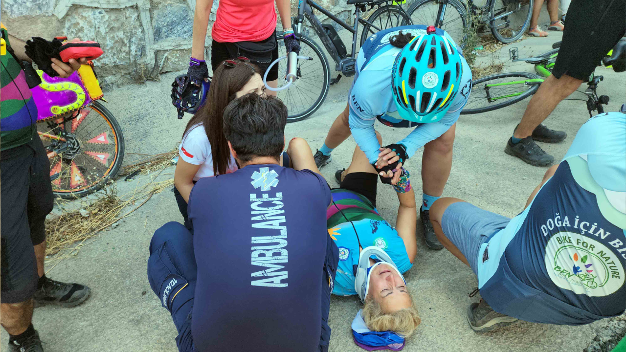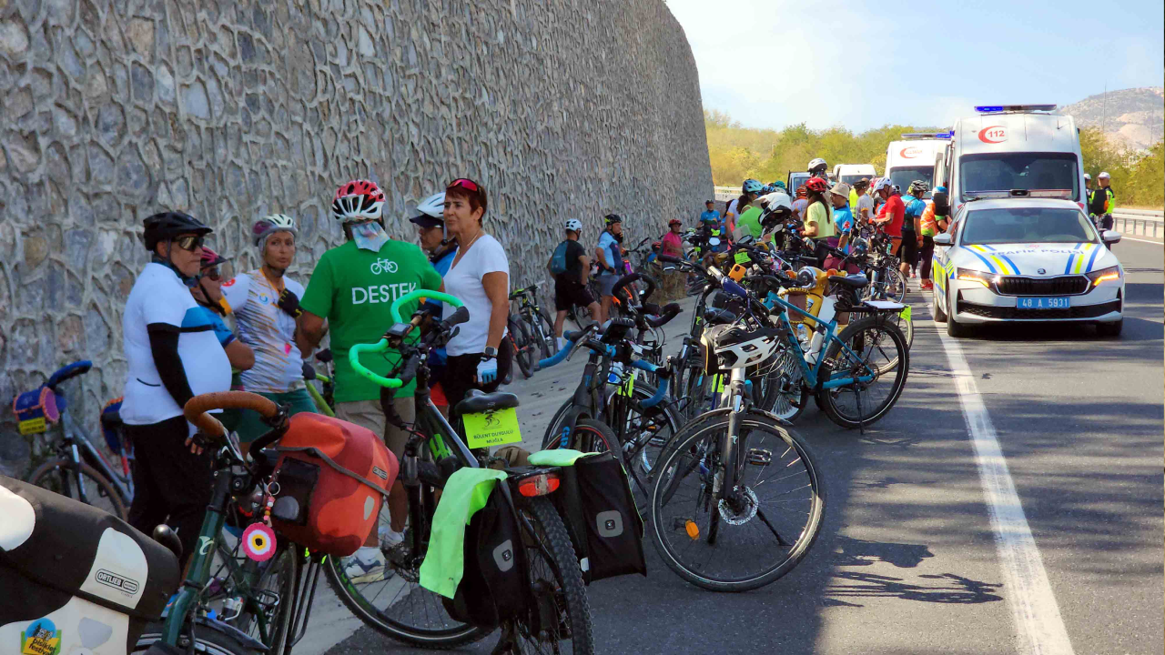 Muğla’da 25-28 Eylül tarihleri arasında düzenlenen 8. Uluslararası Mor Pedal Bisiklet Festivali’ne katılan yaklaşık 100 bisikletçi Yatağan ilçesindeki Stronikeila antik kentini ziyaret ettikten sonra dönüş yolunda yokuş aşağı inerken bilinmeyen bir nedenle kaza meydana geldi.