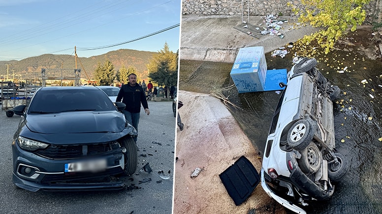Servet K. idaresindeki otomobil, Karaçulha Mahallesi Mut Deresi Caddesi'nde Oğuz M. yönetimindeki otomobille çarpıştı.