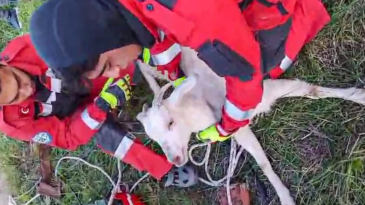 İtfaiye ekiplerinin yaptıkları çalışma sonucu tahlisiz keçi düştüğü kuyudan kurtarıldı.