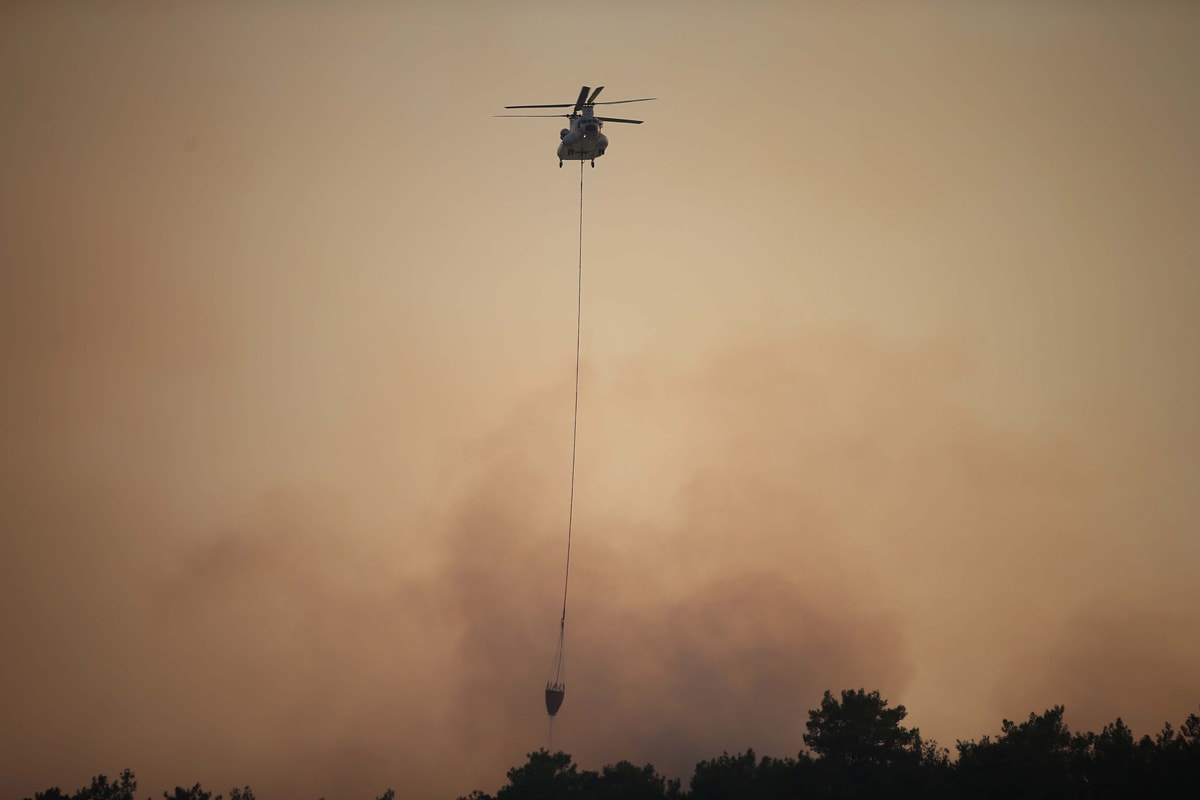 Havanın kararmasıyla karadan müdahale sürerken gece görüşlü iki yangın söndürme helikopteri de çalışmalara katıldı.