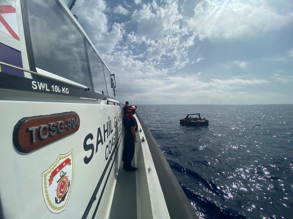 Marmaris ilçesi açıklarında öğle saatlerinde Yunan sahil güvenlik unsurları tarafından Türk karasularına geri itilen can salı içerisindeki 15 düzensiz göçmen kurtarıldı.
